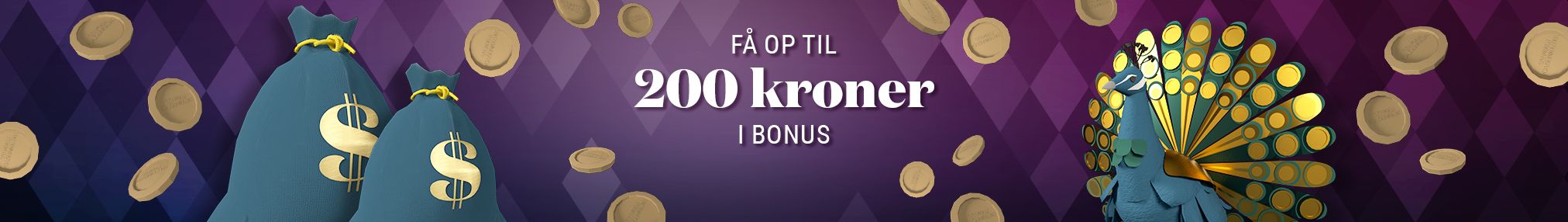 - Tilbuddet er en 100% indbetalingsbonus op til 200 kr., som bliver tilføjet til spilkontoen, når du tilvælger bonussen. Tilbuddet kan kun anvendes én gang.